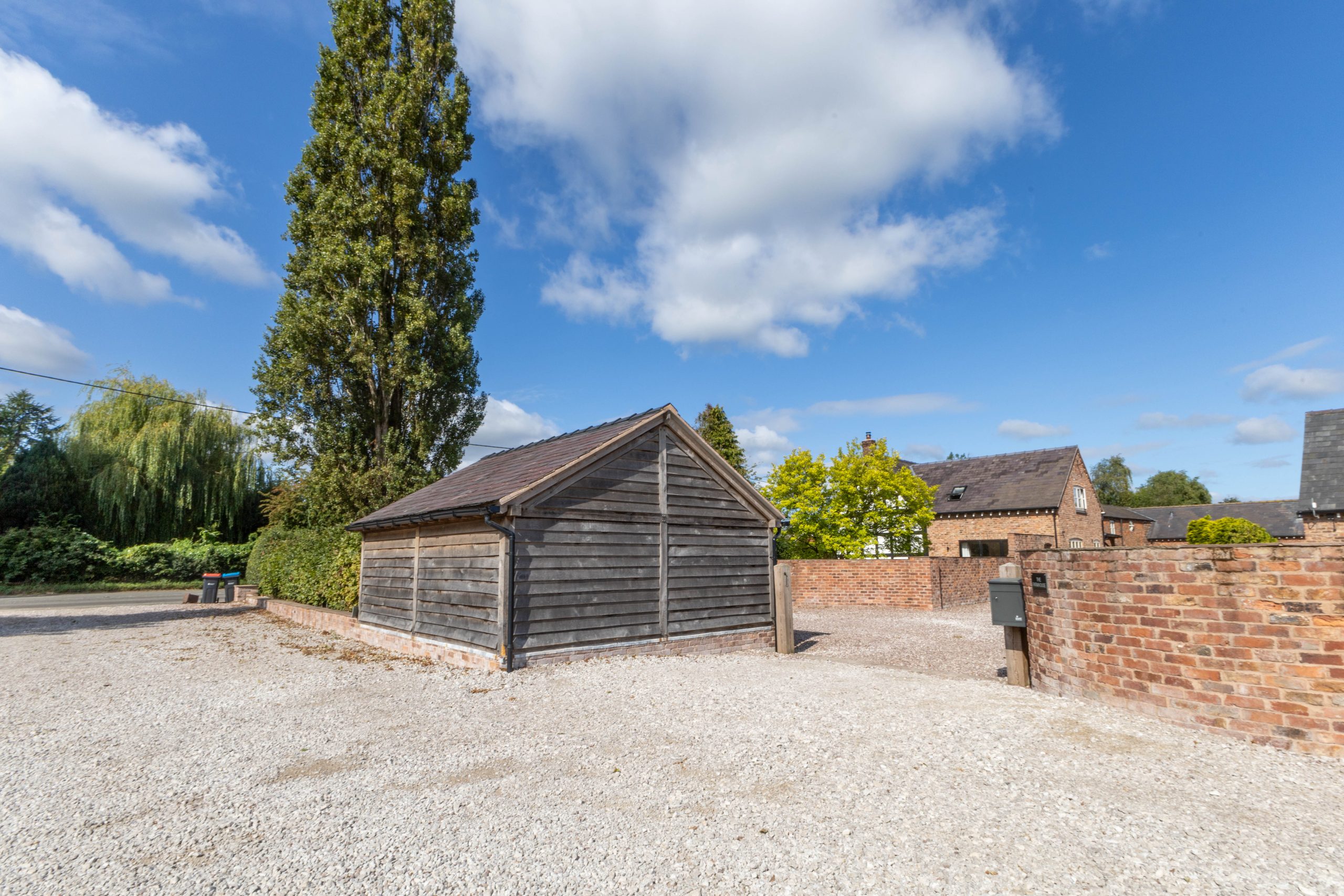A property developer in rural Cheshire required a set of oak-framed structures that would complement the traditional farmhouse aesthetic of the site while providing durable, practical spaces for future inhabitants. The brief included two 2-bay garages, one 3-bay garage with an enclosed storage bay, and an oak-framed porch for one of the rental homes. Each structure needed to sit naturally within the rural surroundings, enhance curb appeal, and contribute to the overall cohesion of the development.