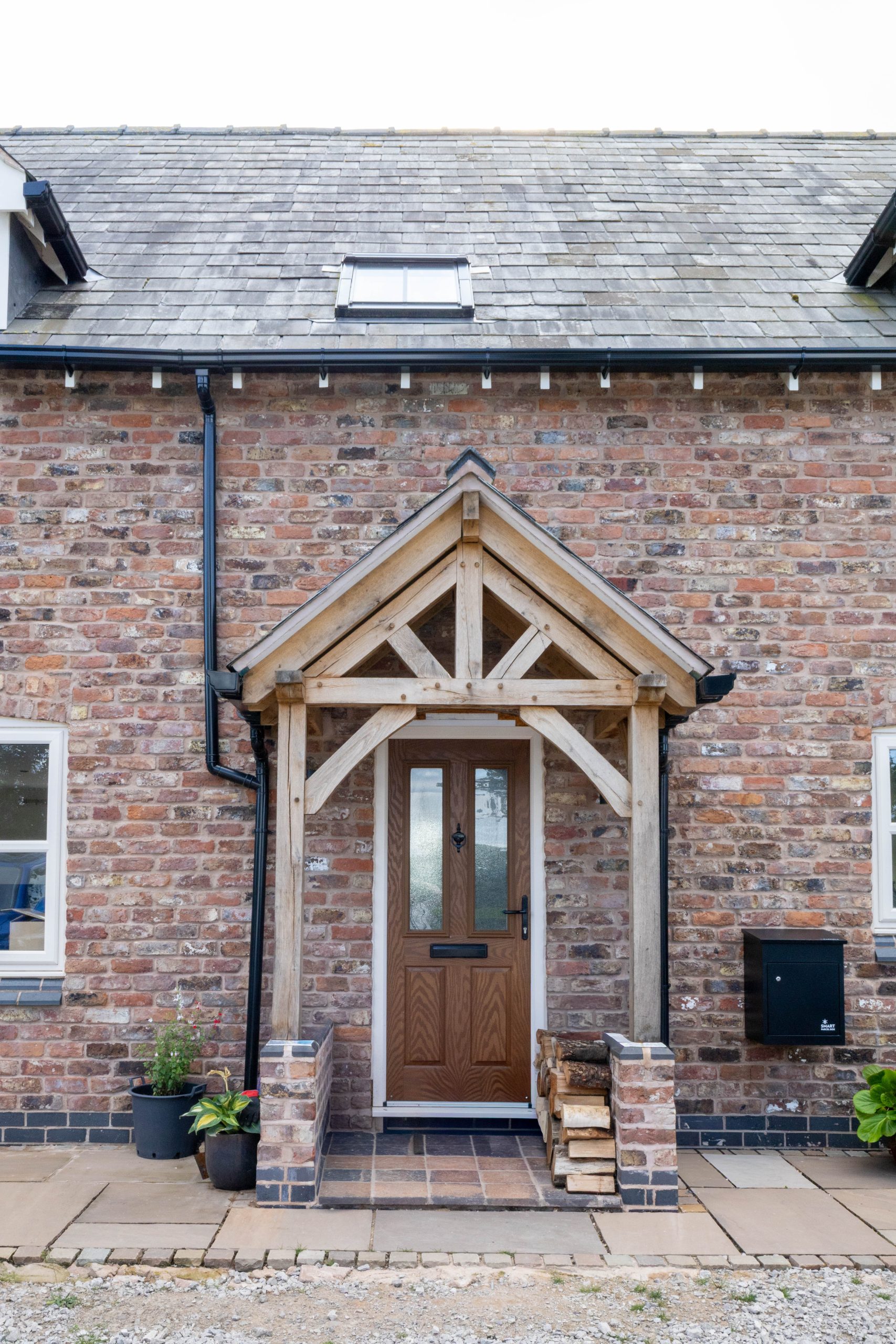 – Oak-Framed Porch: The porch was designed to enhance the frontage of the home, creating a welcoming, characterful entrance that mirrors the traditional farmhouse style. A feature king post truss, a pitched roof and solid oak posts give it structure and charm while offering everyday weather protection.