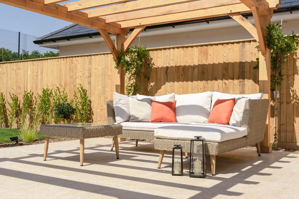 The finished pergola adds a striking focal point to the garden, elevating the overall presentation of the new build home. Its clean, handcrafted design complements the property’s modern architecture while introducing the warmth and authenticity of natural oak. The result is an inviting outdoor living space that enhances the home’s kerb appeal, increases its market value, and offers future owners a ready-made area for relaxing and entertaining.
