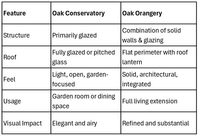 Oak Orangery vs Oak Conservatory: What’s the Difference?