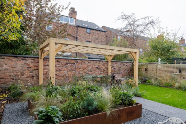 Our bespoke oak pergola kits are fully customisable, from the wood you choose to the design specifications you need. The frames are available in high-quality QP1 green oak or with air-dried beams, and the rafters can be created in oak or softwood.